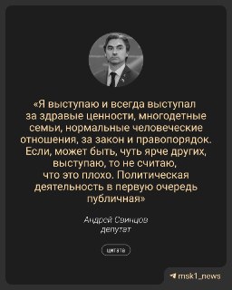 «Внутри партии где-то что-то бывает — что называется, свобода слова. Наверное, если бы я что-то говорил против страны, против государства и каких-то здравых мыслей — ко мне были бы вопросы от других структур. Моя позиция максимально прогосударственная: защита технологического суверенитета, борьба с вредными привычками. У которых, к сожалению, последствия — это гибель людей», — рассказал @msk1_news Свинцов.