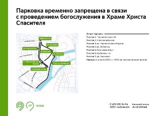 11 апреля с 00:01 и до конца богослужения в центре Москвы временно запретят парковку на Пречистенской набережной, в Соймоновском проезде, на Волхонке, Знаменке, Гоголевском бульваре, площадях Пречистенские Ворота и Арбатская, сообщает Дептранс