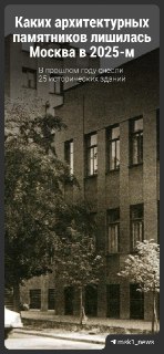 📍А мы продолжаем серию материалов по мотивам «Черной книги» проекта «Архнадзор». Это список архитектурных объектов, которые по решению властей снесли или подвергли радикальной реконструкции. Среди них немало ценных памятников столичной архитектуры.