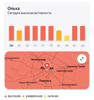 🌼 Аллергики, вы там как? В Москве и Подмосковье сегодня высокая концентрация пыльцы ольхи и орешники.