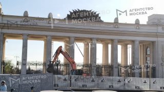 👷‍♂️ Арку главного входа Парка Горького приводят в порядок перед сезоном.