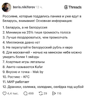 🇧🇾Белорусы подготовили памятку для россиян, рассматривающих возможность переезда в Беларусь