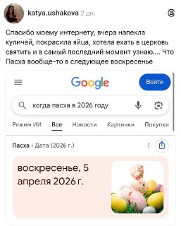 🪺 Часть россиян перепутала дату Пасхи из-за VPN — Google по запросу «когда Пасха в 2026 году» выдавал дату католической, а не православной.