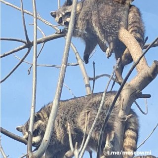 😄 Еноты в Московском зоопарке устроились на ветках, чтобы насладиться солнечными лучами