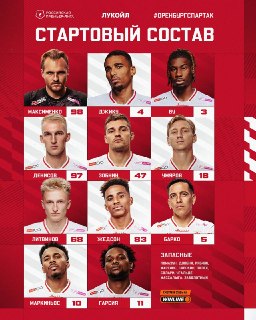 ⚡️ Гарсия и Литвинов в старте: состав «Спартака» на «Оренбург»!