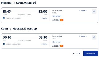 ✈️ Из Москвы в Сочи и обратно можно долететь на самолете за 10 тысяч рублей.