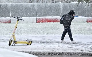 Метель в апреле в Москве. Столицу покрывает мокрый снег.