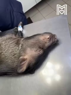 Минипиг сломал заднюю ногу и не мог ходить, но столичные хирурги буквально поставили его на ноги.