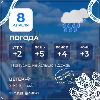🌡️Температура поднимется до +5 °С, небольшой дождь.