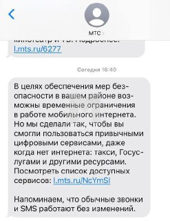 💬 Москвичи получают оповещения об ограничении мобильного интернета.