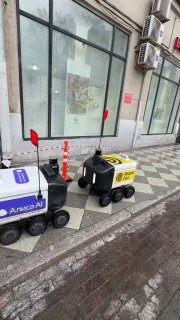 Москвичка помогла малышам-роботам, выступив регулировщиком движения.