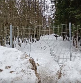Ограждение не имеет специальных переходов для животных, только случайные проёмы от лыжников и пешеходов.