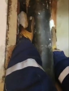На улице Планерная в глухой короб каким-то непонятным образом попал огарь и застрял там