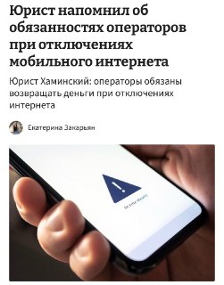 📲 Операторы обязаны вернуть деньги за отключение интернета, сообщают юристы
