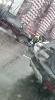 Первые кадры массовой аварии на Ленинском проспекте. Предварительно, столкнулись 8 автомобилей.