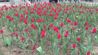 🌷 Первые тюльпаны распустились на клумбах в Москве.
