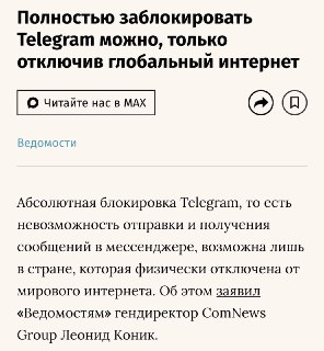 🚫 Полностью заблокировать Telegram можно, только отключив глобальный интернет