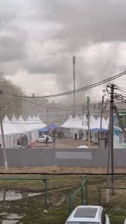 Над крышей комплекса виден дым. Людей эвакуировали.