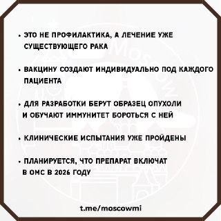 ❗️ Россияне уже в этом году получат бесплатную вакцину от рака — проект Минздрава.