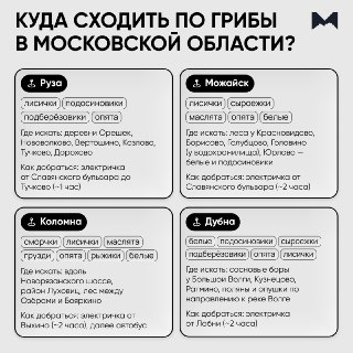 🍄‍🟫 Сохраните себе районы самых грибных мест в Московской области.