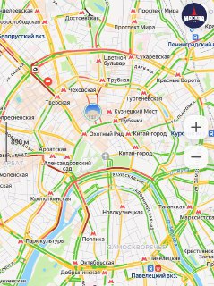 Закрыто движение в сторону центра на Кремлёвской набережной, Большом Каменном мосту и Тверской у Пушкинской площади.