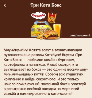 🐱 В Бургер Кинге появились боксы по мультику «Три кота» с мягкими плюшевыми котиками.