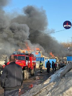 🔥В деревне Островцы под Люберцами пожар — горят бытовки на складе со стройматериалами