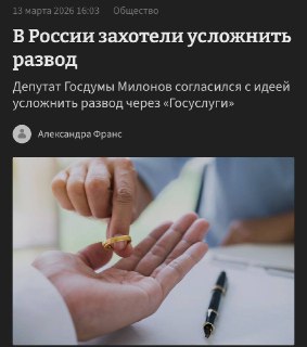 💔 В Госдуме предложили усложнить развод через «Госуслуги»