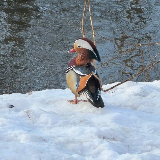 🦆 В Химках поселилась утка-мандаринка. Местные жители приходят посмотреть на эту яркую красотку