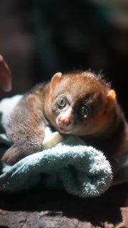 В сентябре прошлого года от него отказалась мама и сотрудники все это время выхаживали зверька. Сейчас Примат Потто ощутимо окреп и подрос.