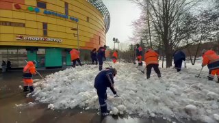 В Москве начали ворошить снег.