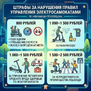 🛴 В Мособлдуме сообщили о штрафах за нарушения правил управления электросамокатами