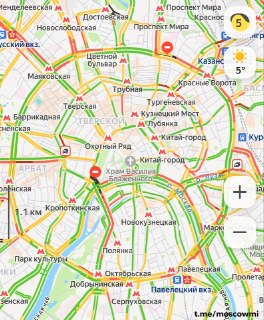 ⚠️ В центре, на севере и северо‑востоке Москвы массовые перекрытия — пробки уже 5 баллов, горожанам советуют пользоваться метро.