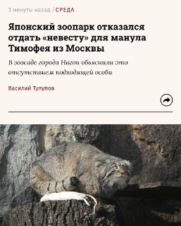 В зоопарке развязывается настоящая драма: манул Тимофей из Московского зоопарка будет без французской невесты. У нее нашли китайский герпес. До этого от Тимофея отказалась самка из Польши.