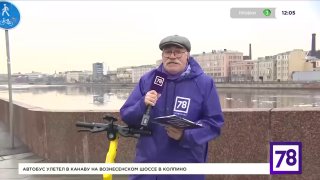 Возвращение легенды: ведущий прогноза погода в Питере упал с самоката во время эфира. Говорит, что совсем не пострадал и даже ничего не ушиб.