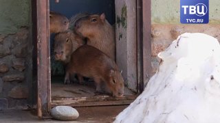 Одним из первых стало семейство капибар. Сначала на вылазку отправилась маленькая Симка, которая родилась осенью прошлого года. Для малышки — это первый выход на улицу.